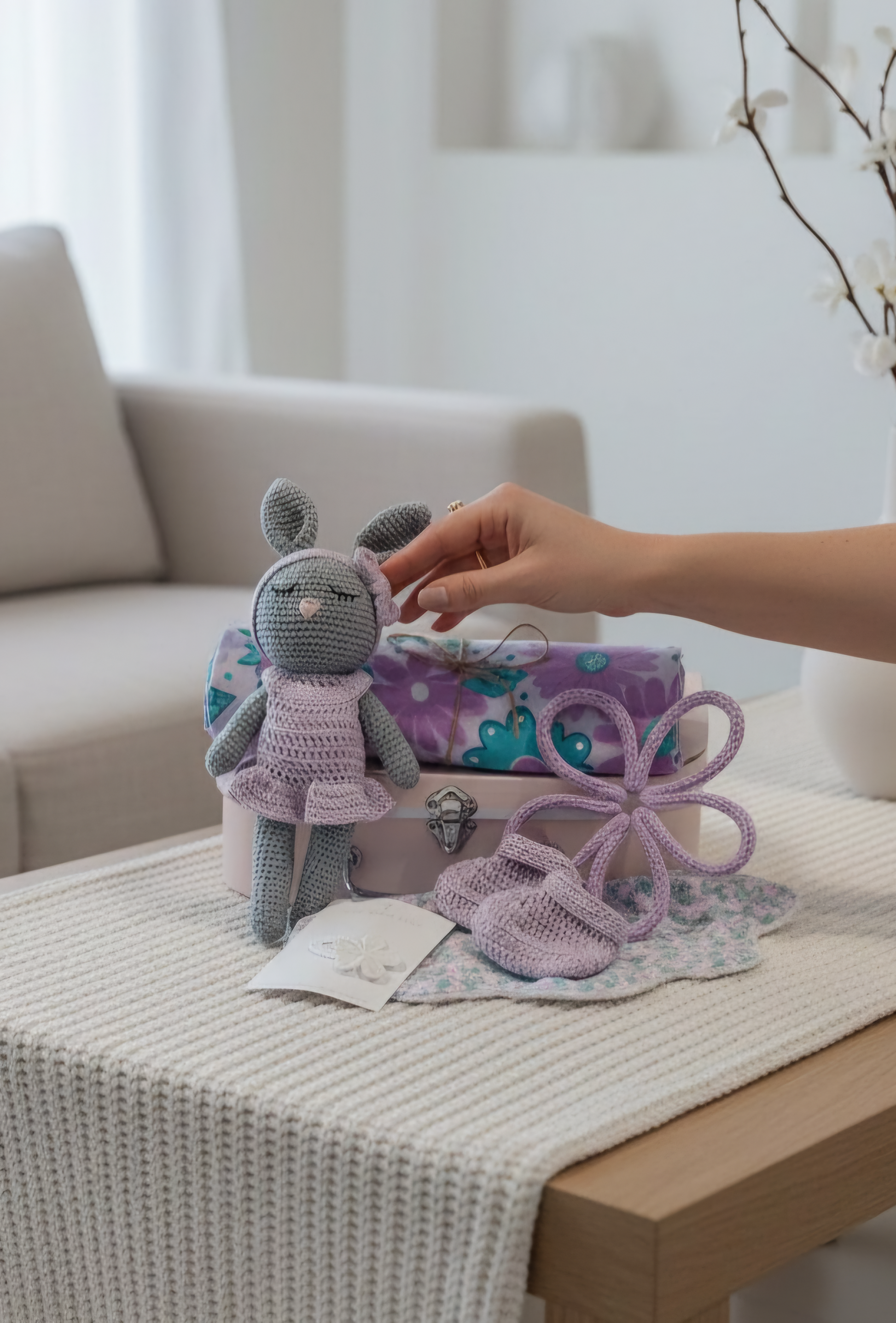 Introducing a truly unique keepsake from Pink Mallows: a one-of-a-kind gift hamper crafted with pure love for a special little girl. This lilac Easter flower gift box is a heartfelt present for a baby’s first Easter, a pampered surprise “just because,” or any moment you want to say you care.