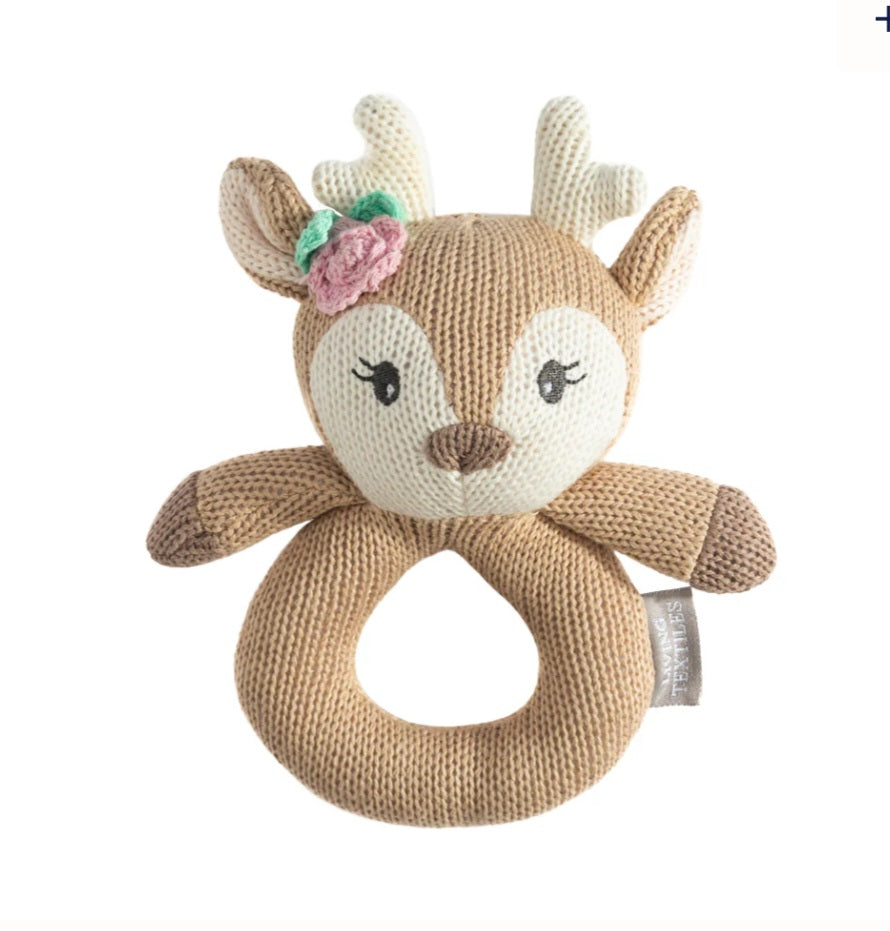 Wooden Comb & Fawn Rattle:** Beautifully crafted, natural wooden essentials by Living Textiles, showcasing Australian craftsmanship.