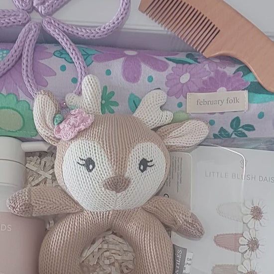 Celebrate the arrival of a special little girl with our beautifully curated Purple Lilac Flower Baby Girl Hamper. Carefully assembled by Elizabeth at Pink Mallow, this charming collection features a selection of unique, handmade, and high-quality items from local Australian artisans. Each piece has been thoughtfully chosen to create a stunning, cohesive gift that will be treasured by new parents and cherished for its beauty and care.