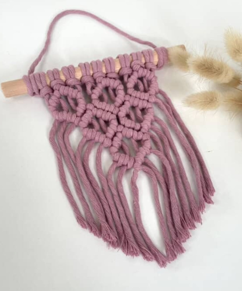 Handmade macramé wall hanging (rose pink)**