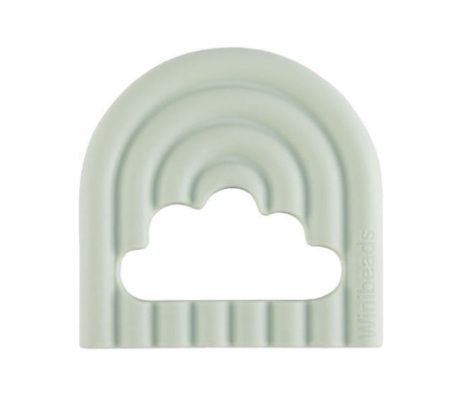 A soothing teether in calming pastel green with a rainbow design to comfort gums during teething.